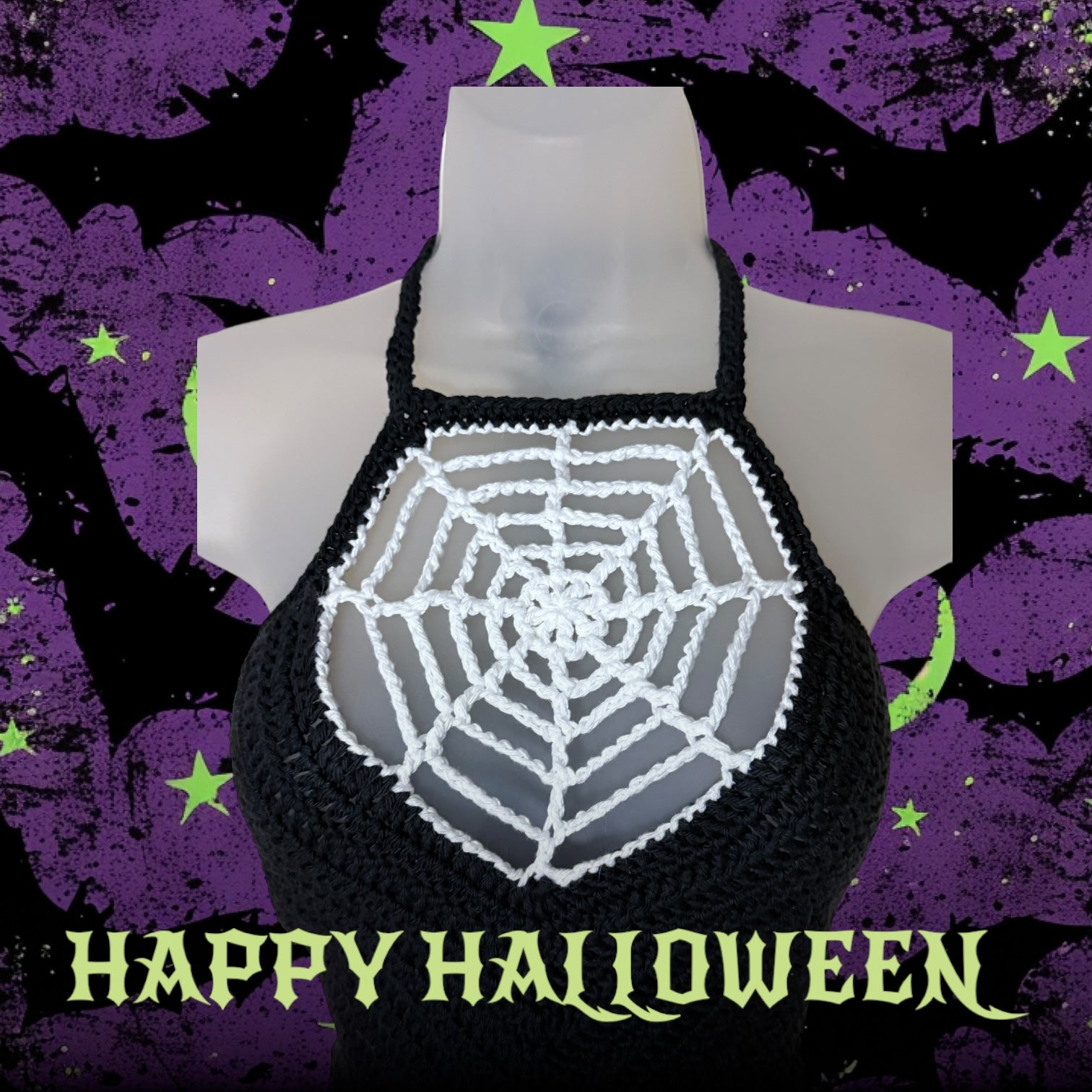 Unleash your spooky side with our 100% cotton Spider Web Crop Top. Perfect for Halloween or anyone looking to stand out. The web design hugs your cleavage and the back ties corset-style for a custom fit. Request additional colors for a truly unique look!